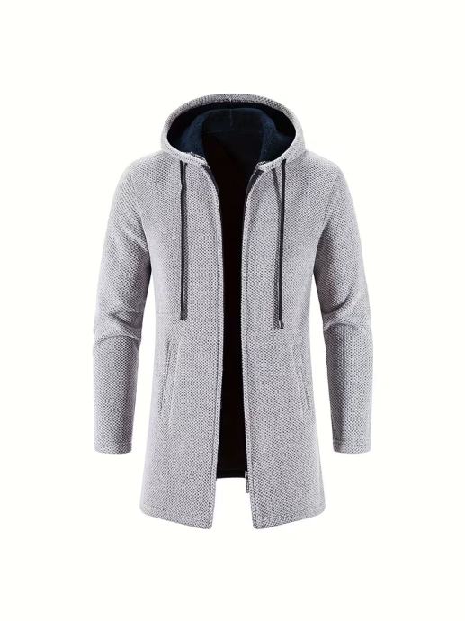 Muška zimska jakna od šenila s kapuljačom i patentnim zatvaračem po cijeloj površini - mekani vanjski kaput pogodan za hladno vrijeme, periva u perilici rublja, ležerna gornja odjeća (tkanina od šenila)