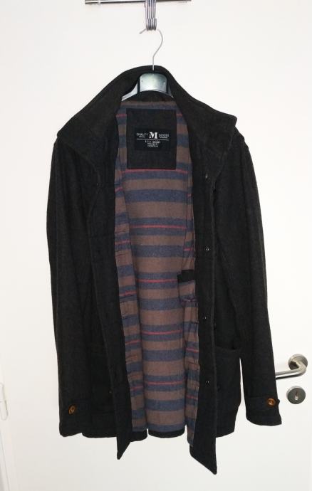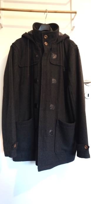 Drap sivi muski kaput s kapuljačom .mješana vuna