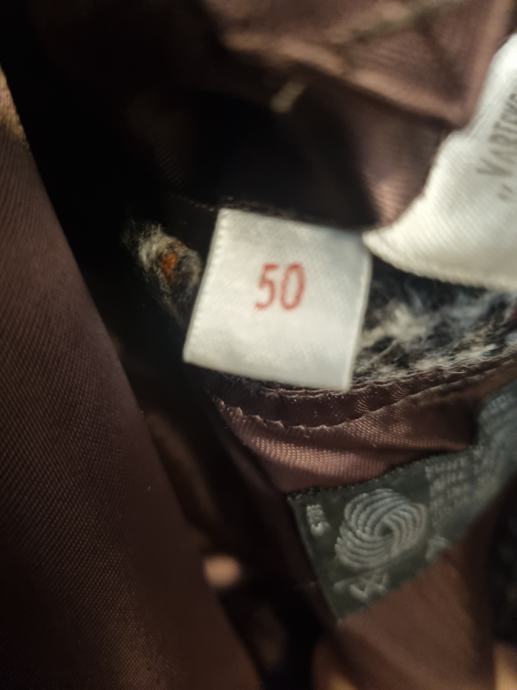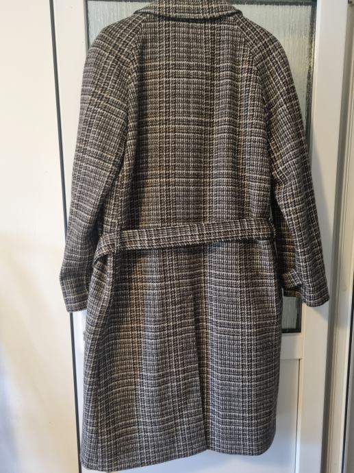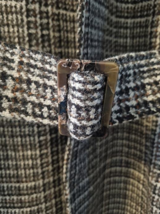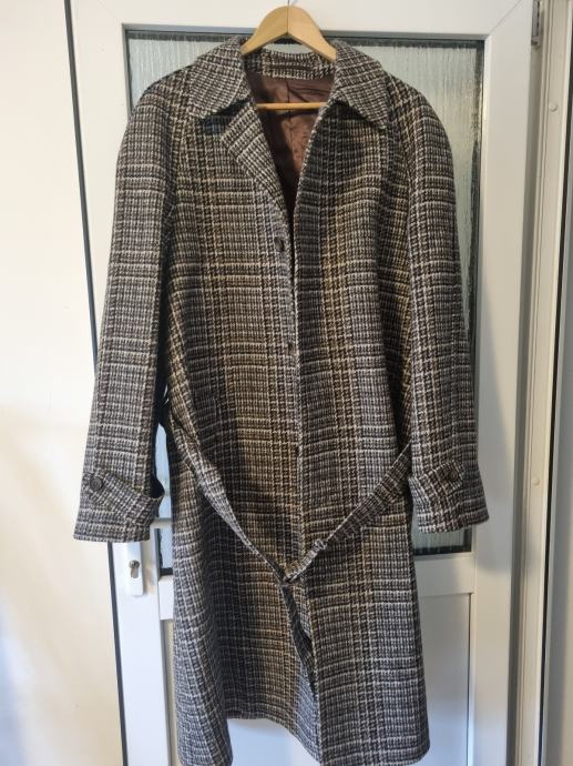 Muški kaput u jako dobrom stanju. Karirani uzorak. Kopčanje na gumbe- sakriveno. Remen u boji kaputa. Veličina 50.