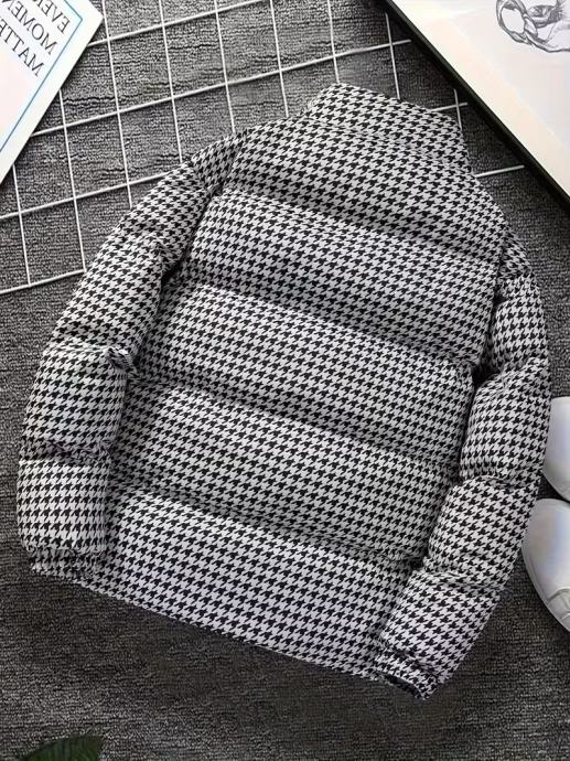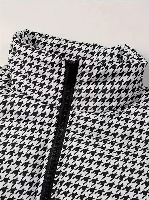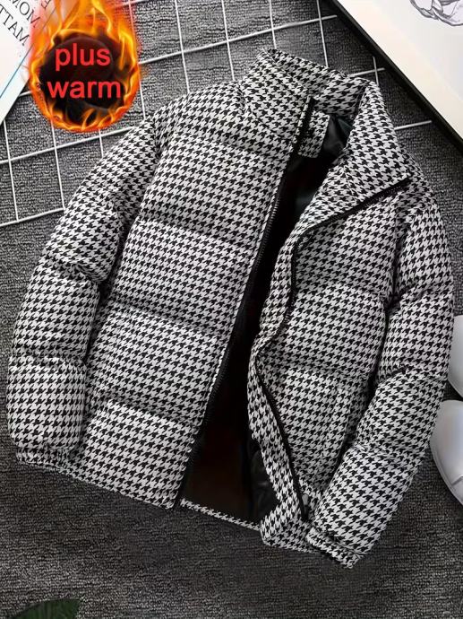 Muški teški zimski kaput - Termoizolirana jakna s patentnim zatvaračem, stojeći ovratnik, Formalna i svakodnevna odjeća za hladno vrijeme - Izdržljiva poliesterska podstava - Crna/Siva/Bijela/ - Idealno za ured, putovanja, ležerne izlaske, Zimska jakna, Uredska odjeća, Klasičan dizajn, Visokokvalitetna tkanina, Ljubitelji aktivnosti na otvorenom, Odjeća za putovanja, Uzorak pepita, Topla podstava, Avanturisti na otvorenom, Debeli,
