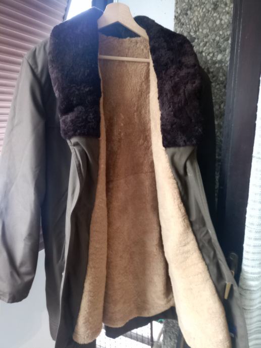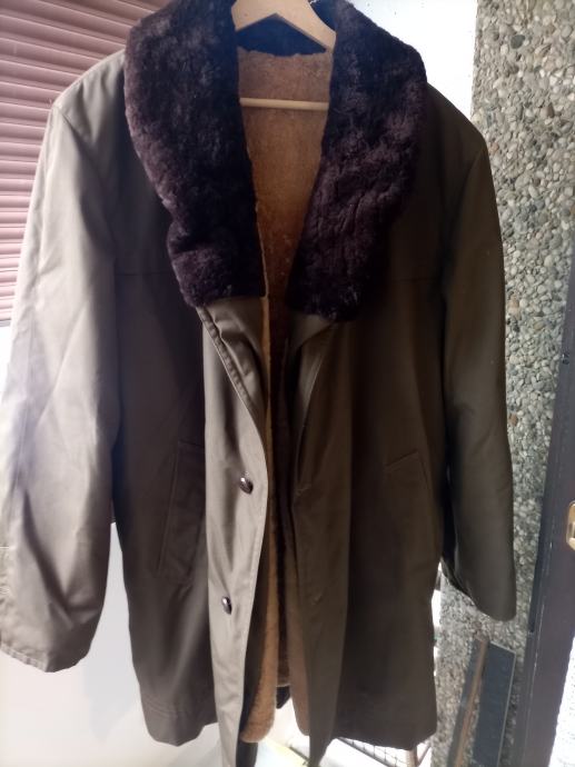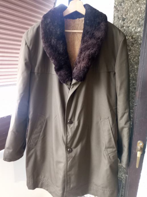 Muški klasični kvalitetni zimski kaput veličine L. Kopčanje gumbi. Cijeli osim rukava podstavljen krznom. Krzno se ne može skinuti. S vanjske strane kvalitetan deblji materijal poput balonera. Krznena kragna. Kosi džepovi.