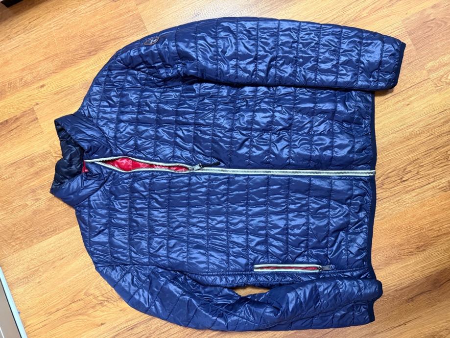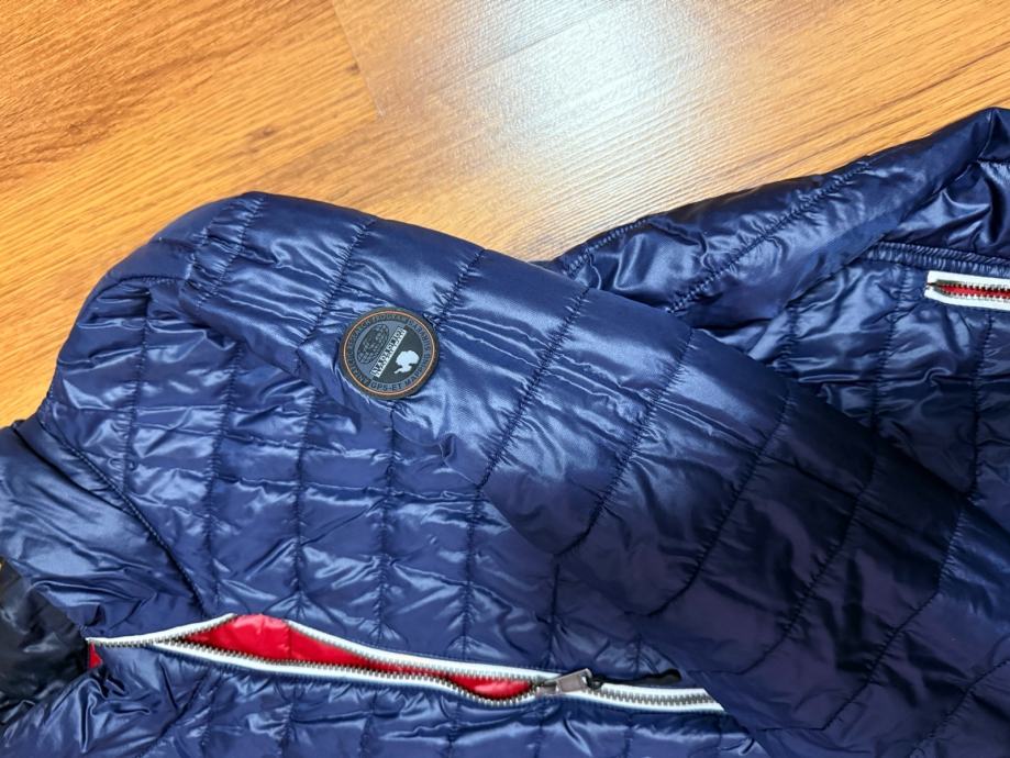 Napapijri tamno plava muška jakna veličine 3XL, malo nošena i u odličnom stanju. Prošivena je u karakterističnom uzorku s dekorativnim crvenim detaljima na patentnom zatvaraču koji dodaju moderan izgled.