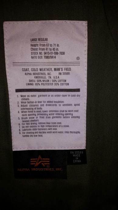 Prodajem original Alpha M65 u odličnom stanju,na dva mjesta su bile prišivke koje su skinute...slike su autentične.