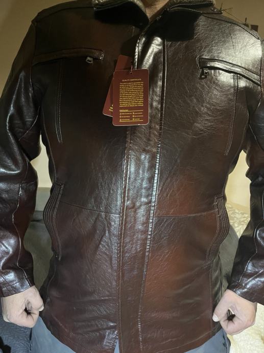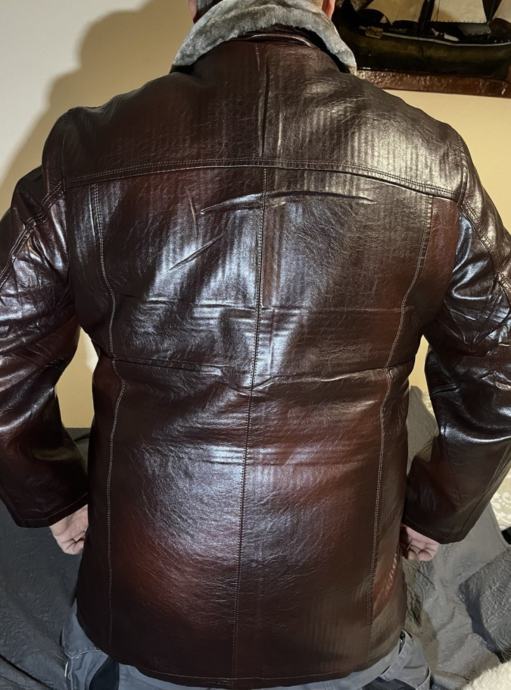 Prodajem mušku kožnu jaknu s krznom. Veličina 58. Boja: tamna čokolada. Koža. Unutra je bunda od ovčje kože. Mjere: dužina rukava=68cm, dužina leđa=82cm, širina=65cm. Novа.
