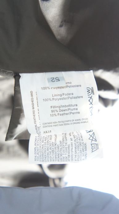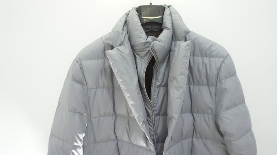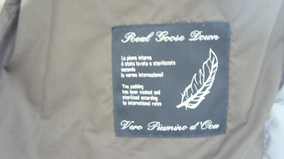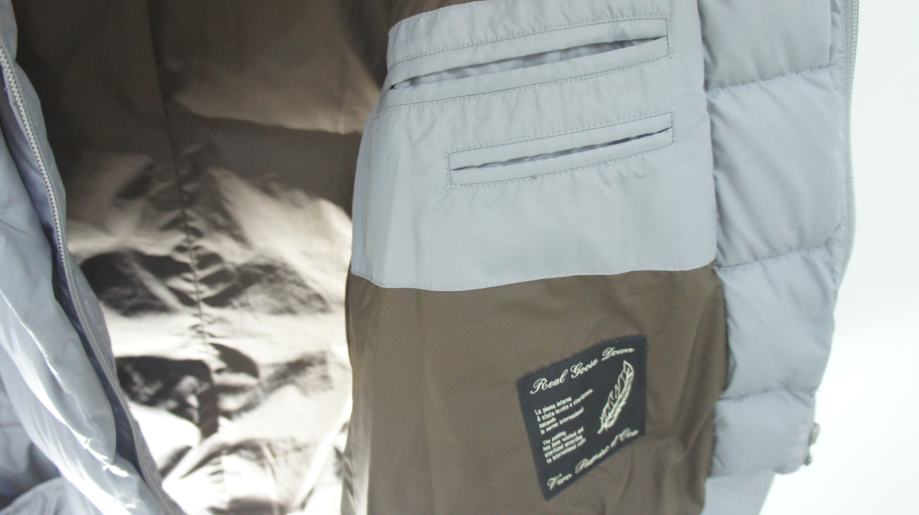 Muska jakna made in Italy marke F32 u kolaboraciji sa Emidio Tucci, punjena pacjim perjem, XL (vise kao L jer je talijanski broj), visoke kvalitete, jako lagana, mekana, udobna. Sive misje boje. Dva vanjska i tri unutranja dzepa + jedan mali unutranji skriveni.