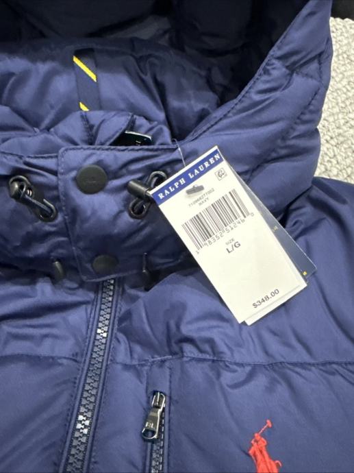 Prodajem Ralph Lauren musku pernatu jaknu u plavoj boji, veličine L. Jakna je nova s etiketom, izrađena od pamuka. Klasičan dizajn s kapuljačom i prednjim zatvaračem, sa karakterističnim crvenim polo logom. Punjena je perjem što osigurava toplinu i udobnost. Jakna ima bočne džepove na patent zatvarač te dodatni džep na prsima.