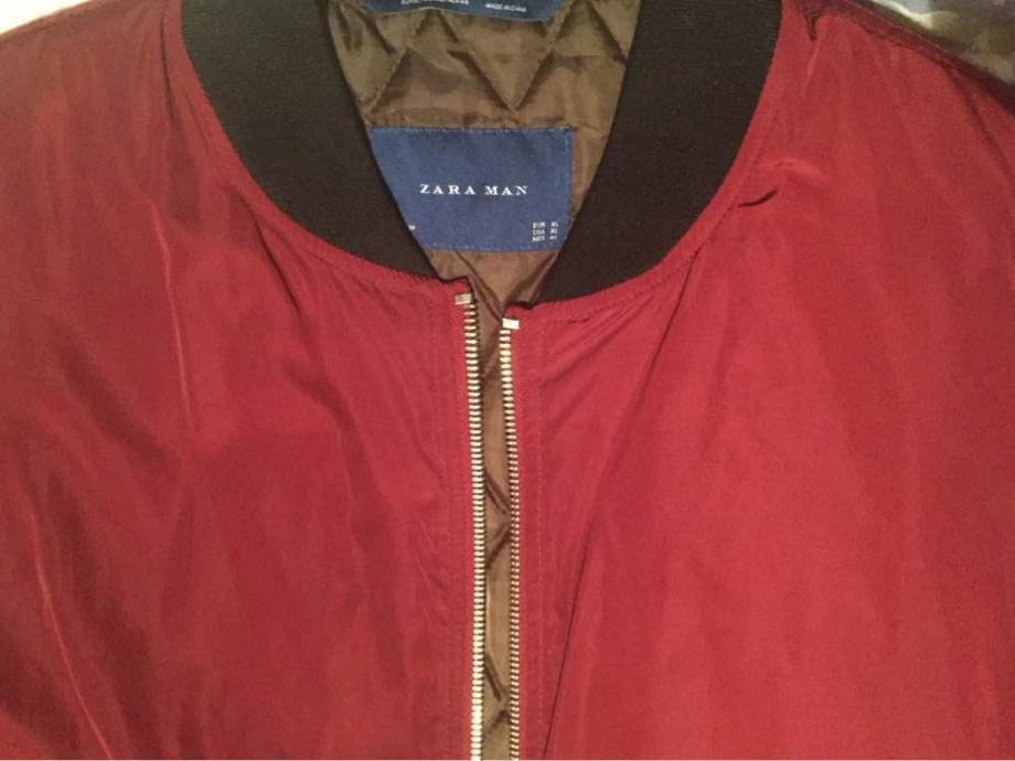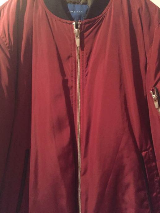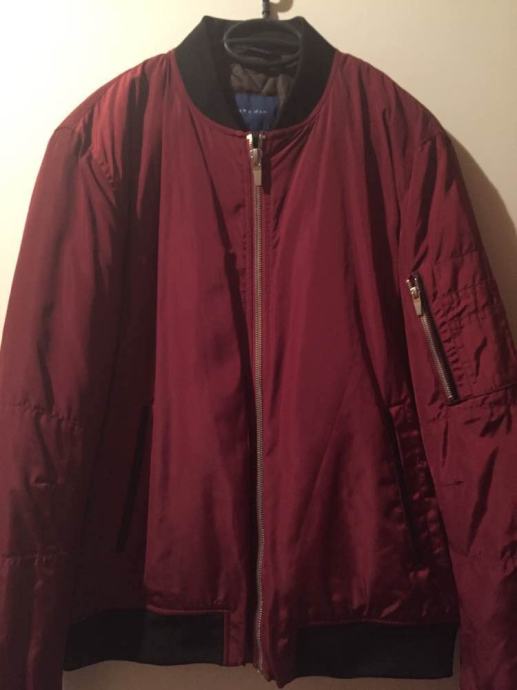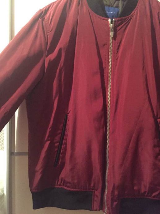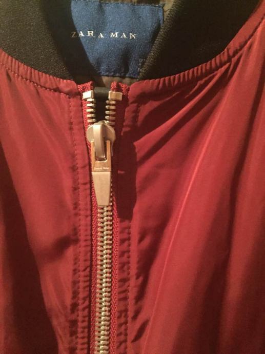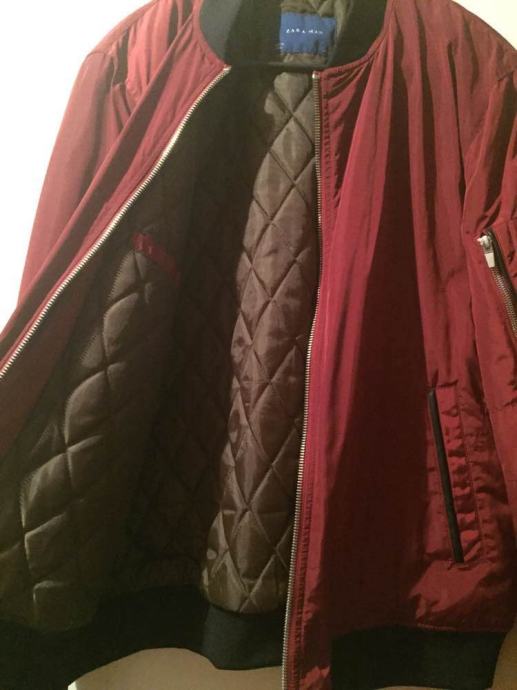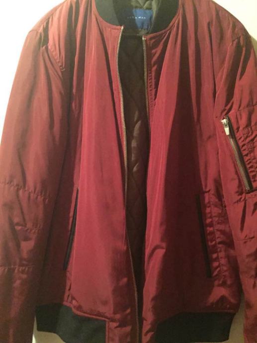 ZARA bomber jakna vjetrovka zanimljive bordo crvene boje..topla štepana podstava..zip na prednjici kao kopčanje..topla i udobna..vel.L-XL...slika s neta kao prikaz modela jakne..kao nova!