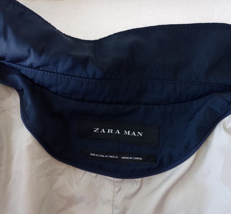 ZARA MAN višenamjenska tamnoplava jakna deklarirane veličine M (za prsa širine 96-102 cm). Ima unutrašnji topli prošiveni prsluk, koji se može izvaditi (zip sistem). Tako da se može nositi ko topla zimska ili laganija jesenja/proljetna). Izrađena je od poliestera i nepromočiva. Ima džepove sa poklopcem i na zip. Ima dodatne gumbe (jedan mali i dva veća). Kraće korištena. Nedostaje joj remen oko struka (ima gajke).