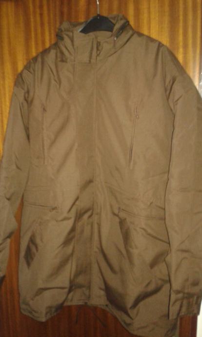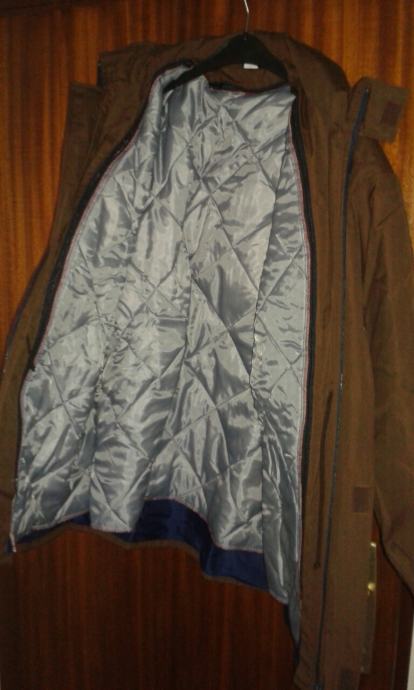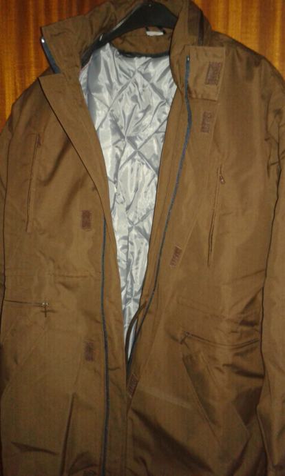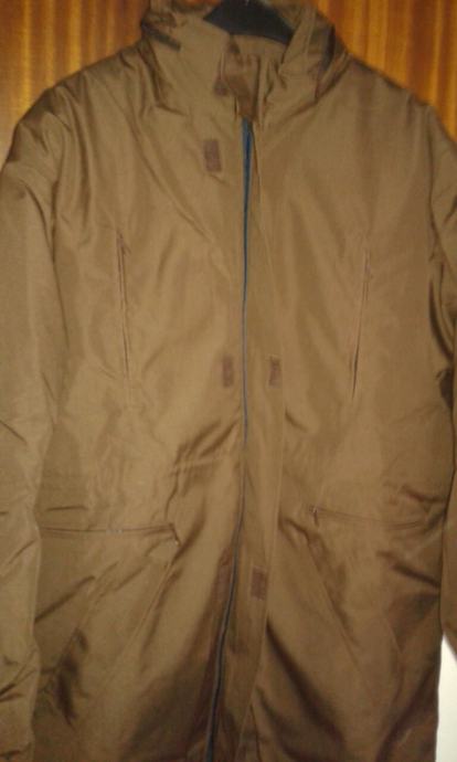 Nova zimska jakna smeđe boje, veličina 50, šest džepova, kapuljača u sklopu kragne, proštepano utopljenje odvojivo od jakne zatvaračem, dužina jakne 80 cm, širina u ramenima 60 cm, dužina rukava 60cm.