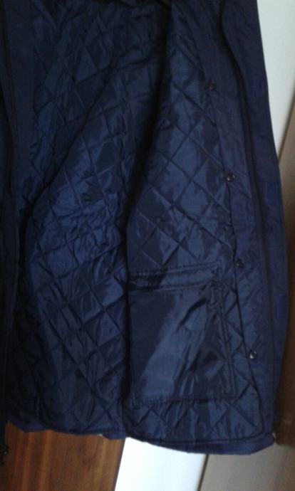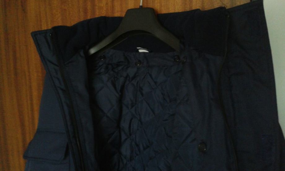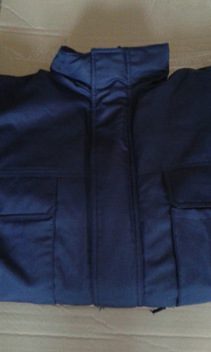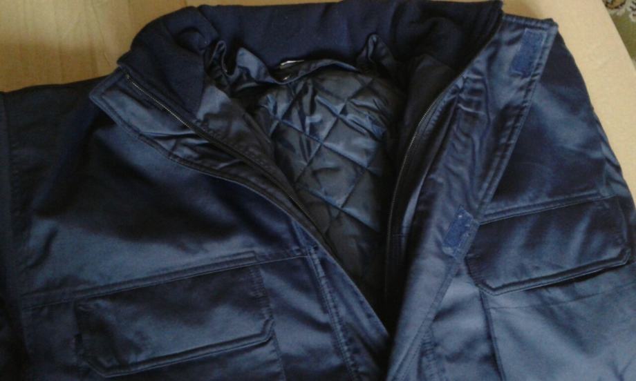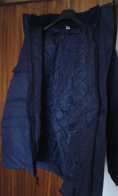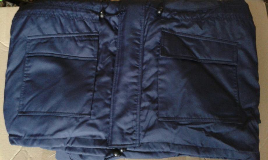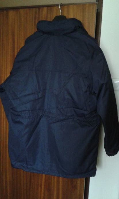 Nova zimska, topla jakna, plave boje, veličina br.54, otporna na vjetar i kišu, širina u ramenima: 60cm, dužina jakne: 85cm, proštepano utopljenje odvojivo od jakne, kapuljača u sklopu kragne.