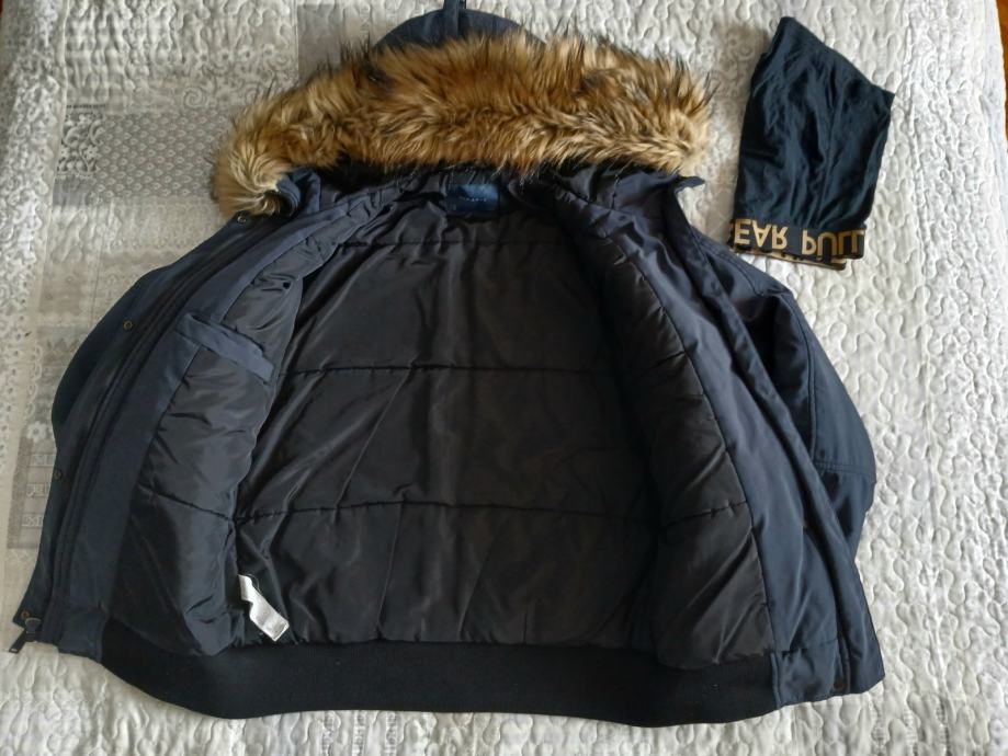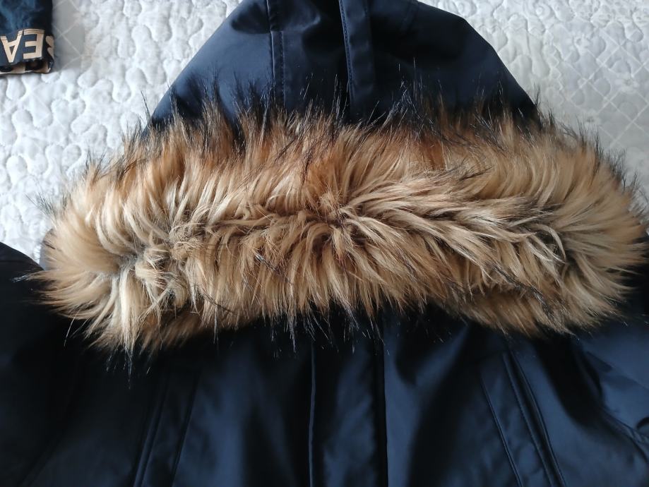 Prekrasna muška zimska jakna u tamnoplavoj boji. Sa kapuljačom i bogatim krznom. Veličina L.