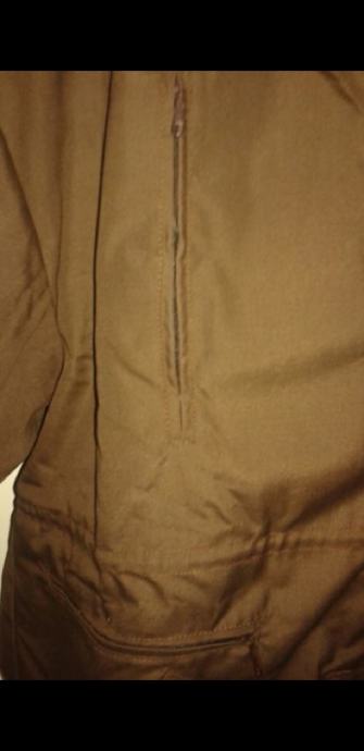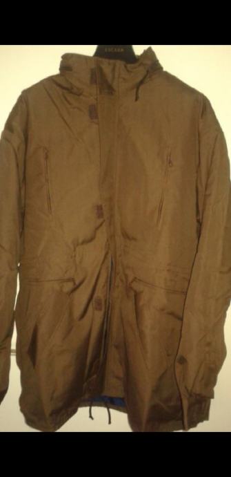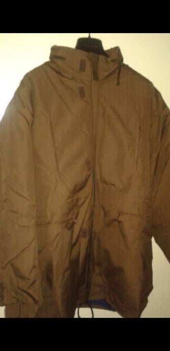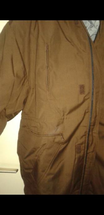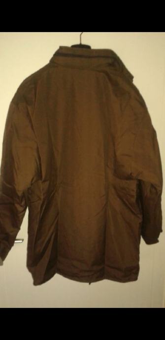 Nova, nikad nošena, zimska jakna, smeđe boje, šest džepova, kapuljača u kragni, postavljena odvojivim štepanim utopljenjem na cif, širima u ramenima 60 cm, dužina rukava 60 cm, dužina jakne 80 cm.