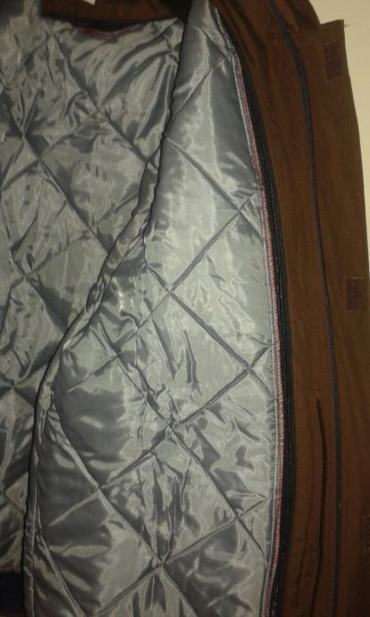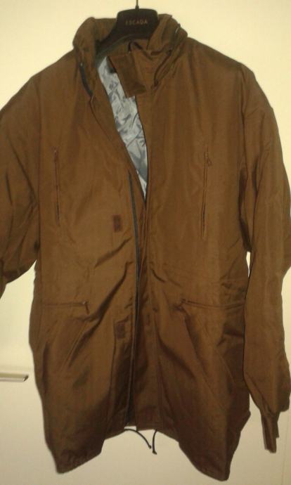Nova, nikad nošena, zimska jakna smeđe boje, šest džepova, kapuljača u kragni, postavljena odvojivim štepanim utopljenjem na cif, širina u ramenima 60 cm, dužina rukava 61 cm, dužina jakne 80 cm.