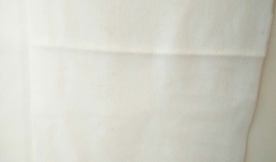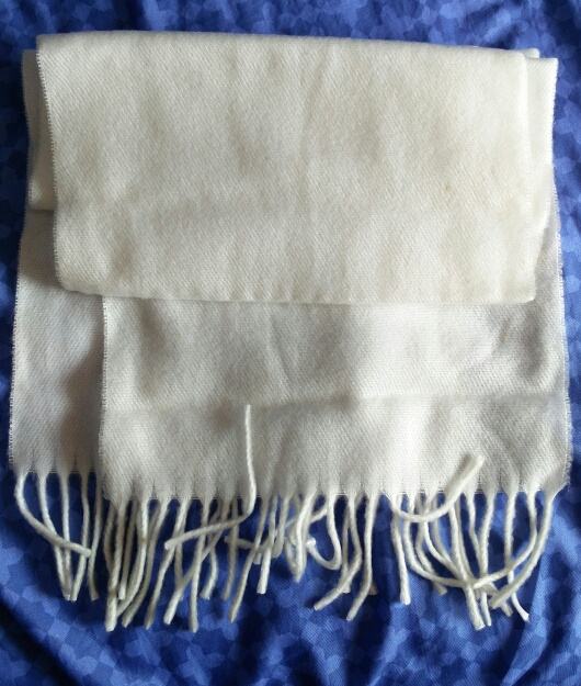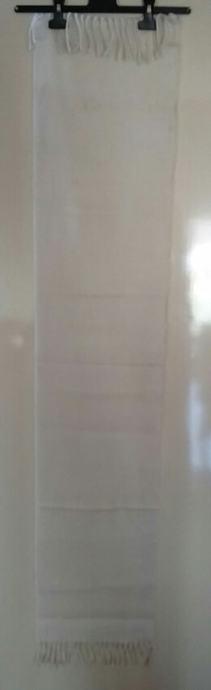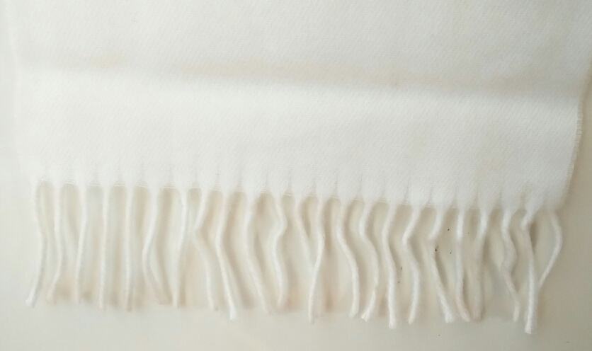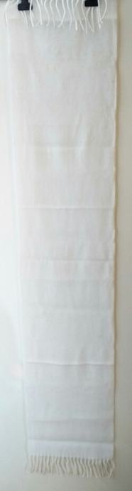 Bijeli pleteni šal sa resicama, dimenzija 150 x 30 cmi.