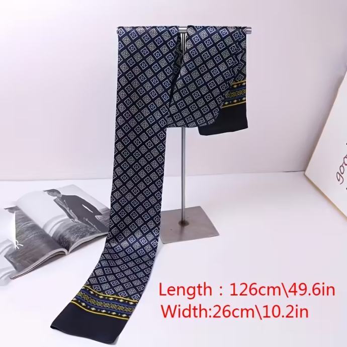 Luksuzni tamnoplavi šal za muškarce sa zlatnim i žutim geometrijskim uzorcima - elegantan poslovni stil, savršen za ležernu odjeću i slaganje s odijelom