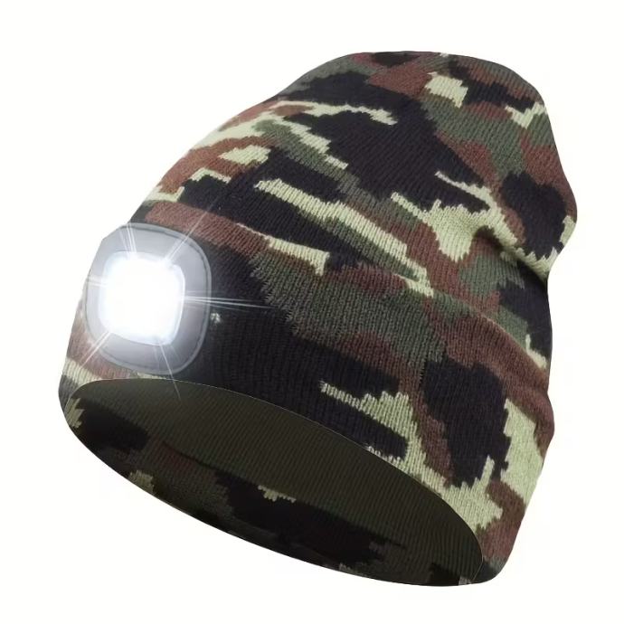 Zimska kamuflažna kapa, LED kapa sa svjetlom, uniseks USB punjiva čeona lampa, zimska pletena kapa, poklon za muškarce, tatu, muža, njega