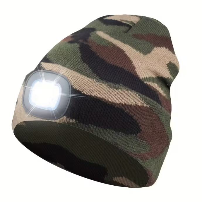 Zimska kamuflažna kapa, LED kapa sa svjetlom, uniseks USB punjiva