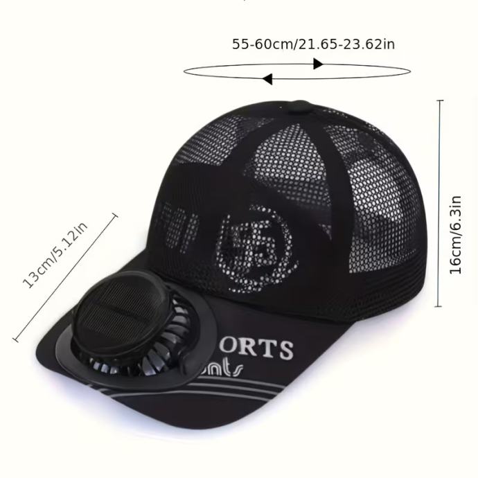 Bejzbol kapa s ventilatorom na solarni pogon | Vanjska kapa za hlađenje i suncobran | Punjiva putem USB-a s 3 podesive brzine vjetra | Prozračni mrežasti dizajn. Automatski osigurava protok zraka za hlađenje pomoću izvora svjetlosti. Pogodno za planinarenje/biciklizam/ribolov/tenis | Styli