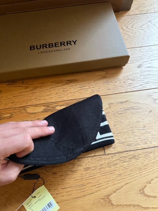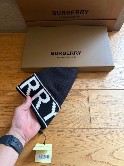 Nova Burberry crna kapa univerzalne veličine s prepoznatljivim logotipom brenda. Dolazi u originalnom pakiranju s etiketom, potpuno nova i nekorištena. Savršen modni dodatak za hladnije dane koji će upotpuniti svaki zimski outfit.