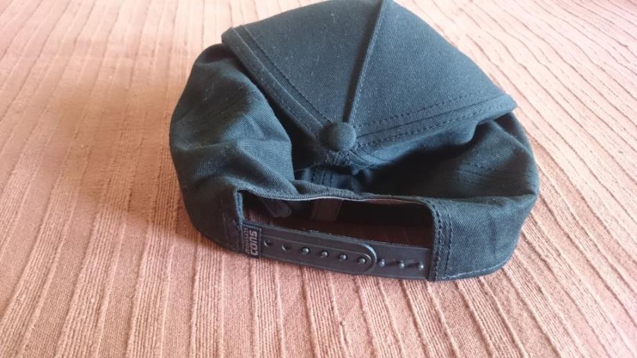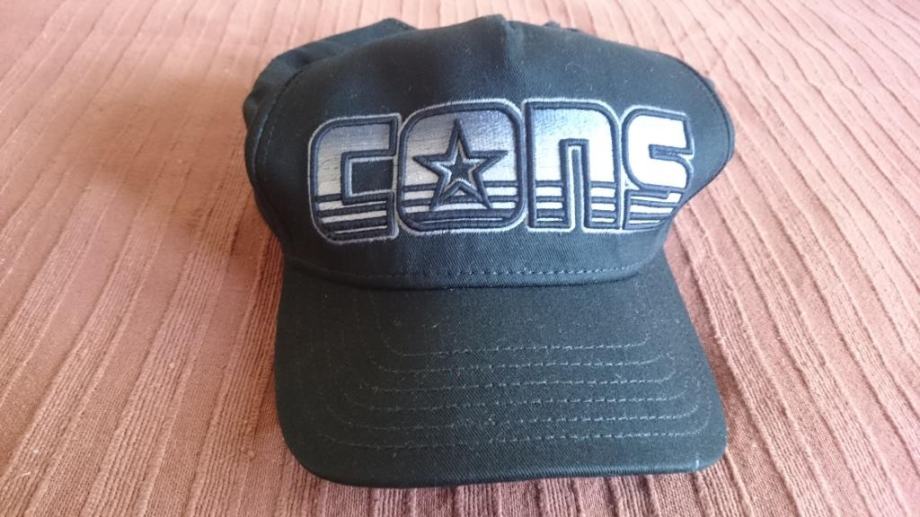 Kapa je crne boje sa sivim 3D natpisom CONS.
