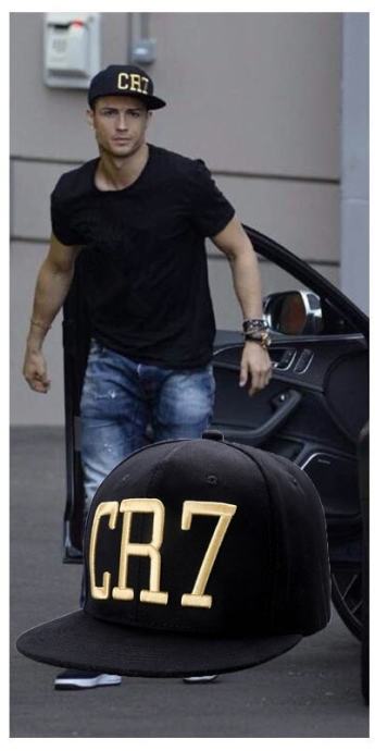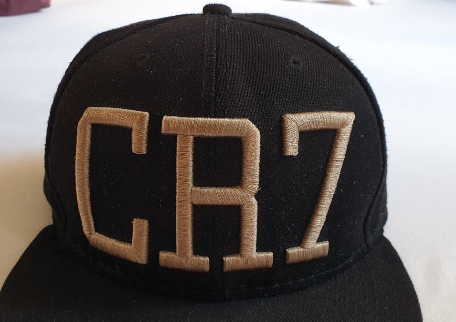 Crna boja sa zlatnim koncano usivenim slovima CR7