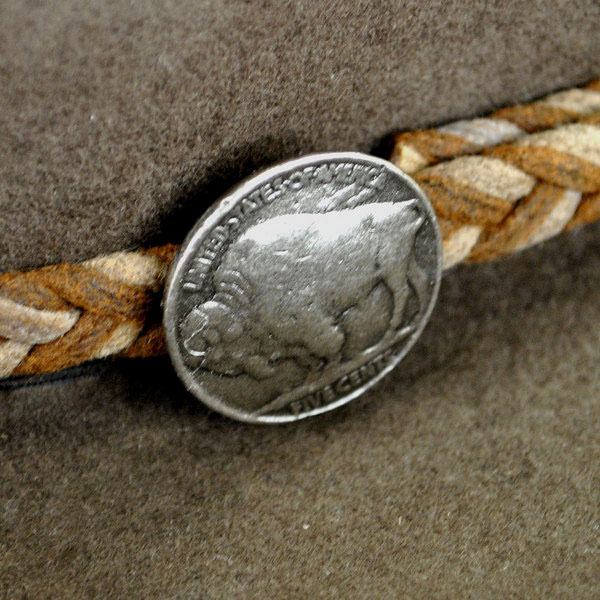 Pletena kožna vrpca sa bizonom od nikla / Leather hat band with buffalo nickel