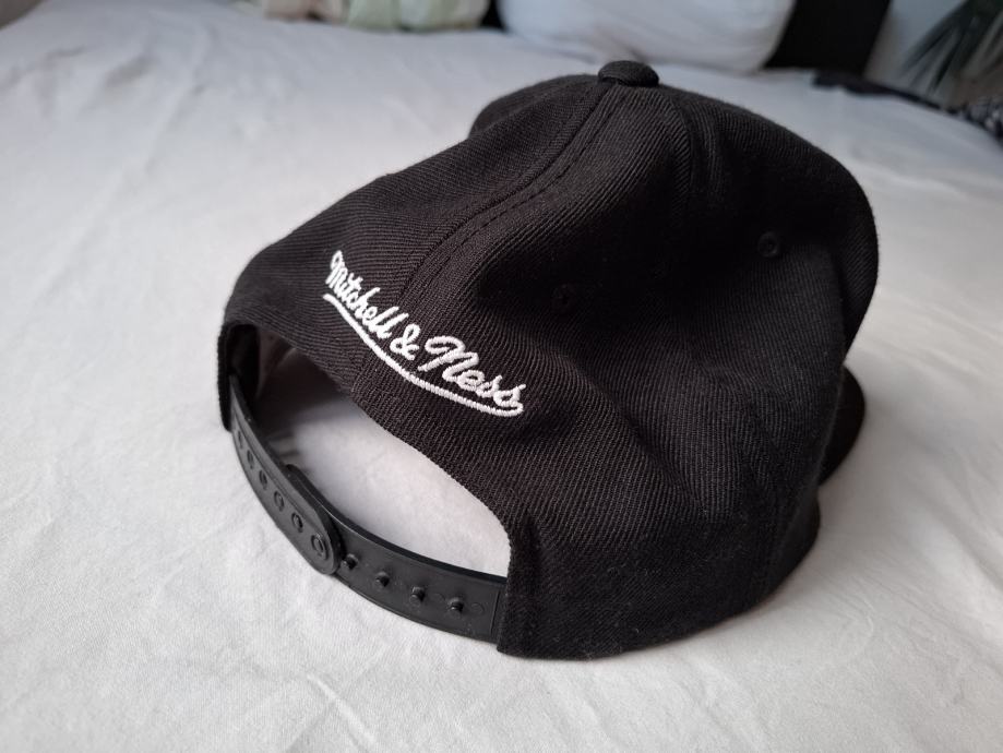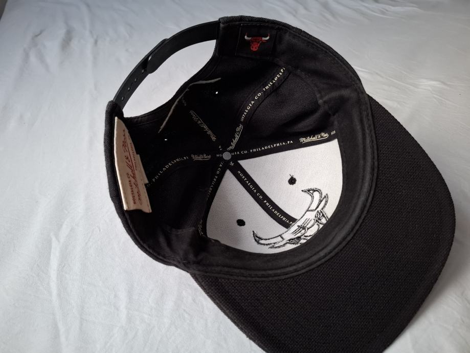 Dizajn: Crno tijelo kape s velikim izvezenim logom Bullsa. Šilt ima poseban sivi "honeycomb" uzorak, a odozdo je crvene boje s Mitchell & Ness potpisom.