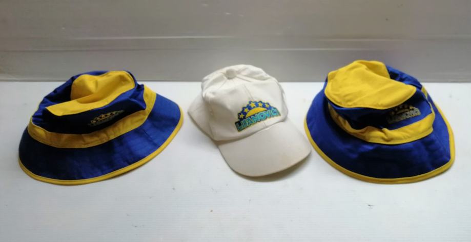 Tri reklamne kape (baseball kapa, šilterica, kačket, šeširić), novo nekorišteno.