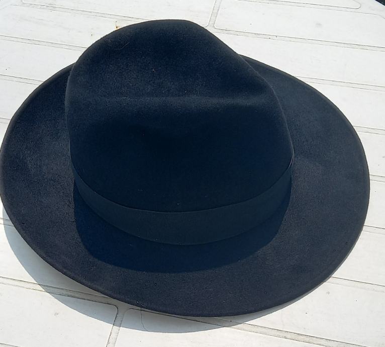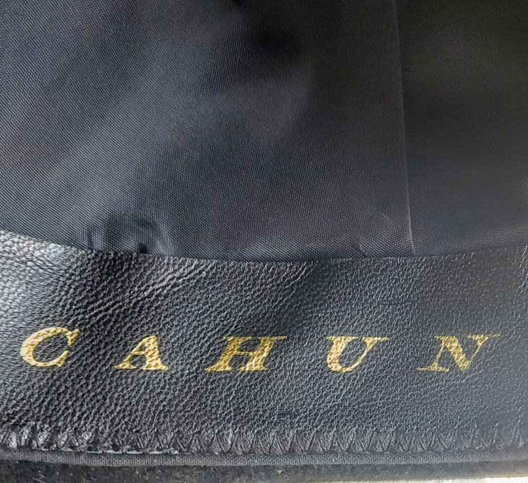 Prodajem rabljeni Cahun šešir elegantnog crnog dizajna s prepoznatljivom trakom. Radi se o ručno izrađenom modelu iz tradicije koja seže još od 1935. godine. Savršen muški modni dodatak za upotpunjavanje stila s kvalitetnom izradom i autentičnim potpisom brenda.