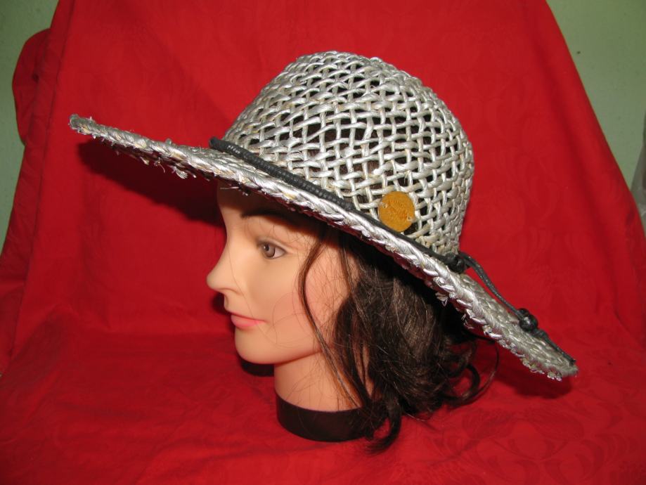 Šešir je izrađen od prirodnih vlakana neke trave ili neki sličan materijal.