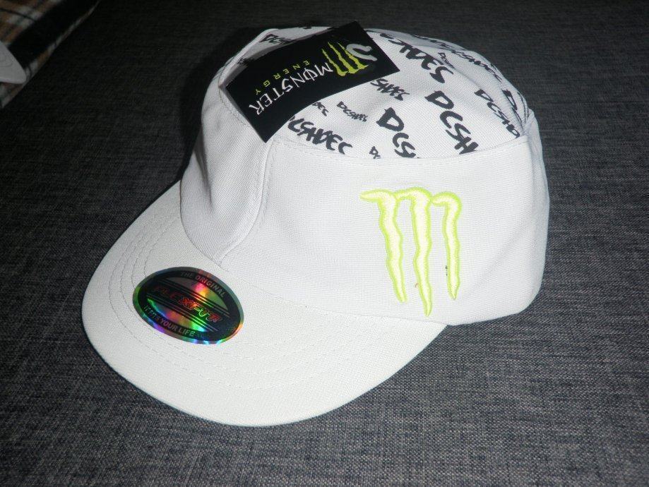 Bijele boje crni print na vrhu kape floroscentni logo M vezen koncem