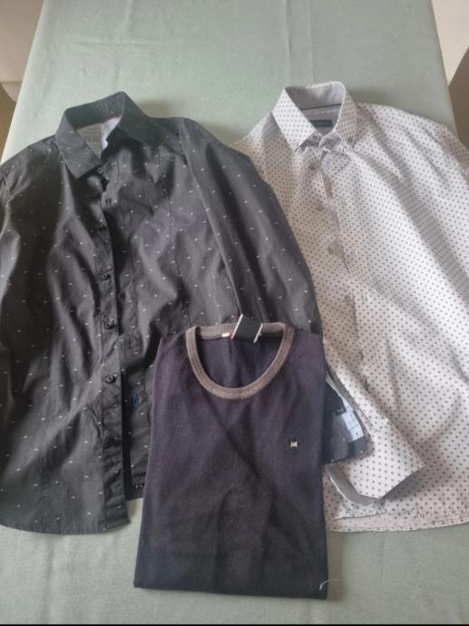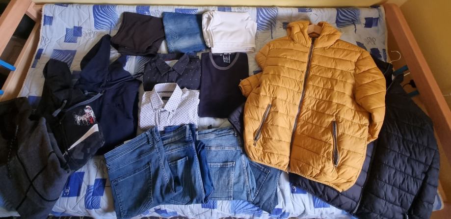 Prodajem 15 muških odjevnih predmeta kako bi se riješio gužve u ormaru. Sva roba je veličine S/M, ako je potrebno izmjerim. Sve je bez oštećenja osim male jedva vidljive rupice na crnom skafanderu, vidljivo na slici. Žuta jakna, Tom Tailor traperice te košulje korištene svega jednom.