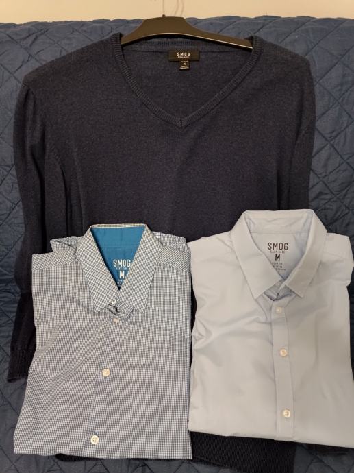 2 muške košulje dugih rukava i jedna tanja vestica na V-izrez. Kao novo,nošeno 2 puta. Sve je veličina muški M. Sve zajedno 25 eura. Pogledajte i ostale moje oglase Pod svi oglasi ovog oglašivača.