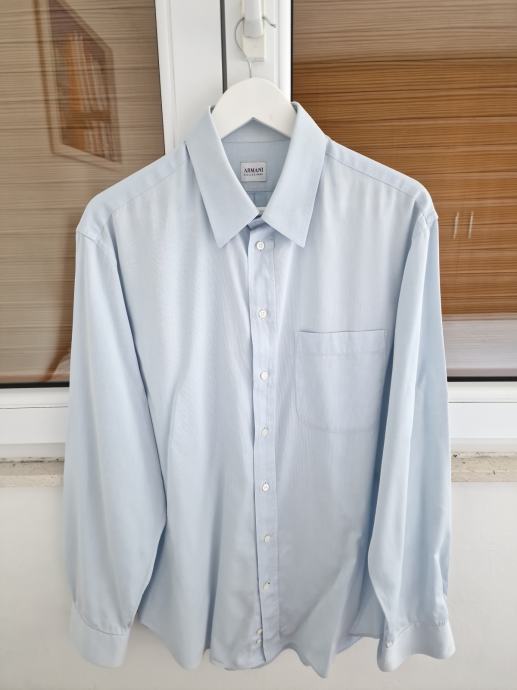 Prodajem Armani Collezioni plavu košulju dugi rukav. Original, odlično očuvana, veličina: 43 (XL), prsa: 60 cm, ramena: 50 cm, dužina: 80 cm i dužina rukava: 66 cm. Šaljem poštom ili Tisak paketima poslije uplate.