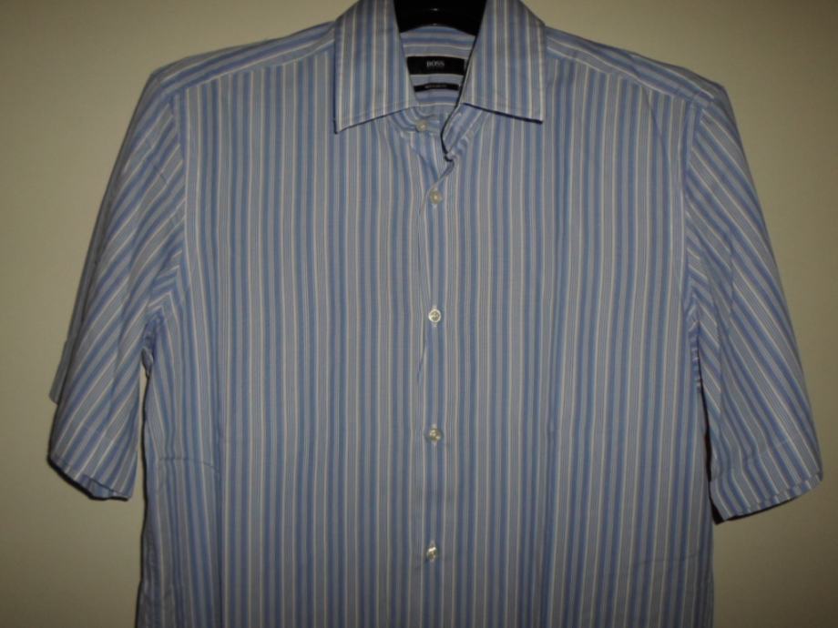 Hugo Boss - Regular Fit orig. muška košulja kratkih rukava. Prekrasnog prugastog dezena u svijetlo plavoj i bijeloj boji. Nošena samo jednom, plaćena previše pa šteta do stoji. Navedena vel.40, odgovara nekome tko nosi vel.L/XL