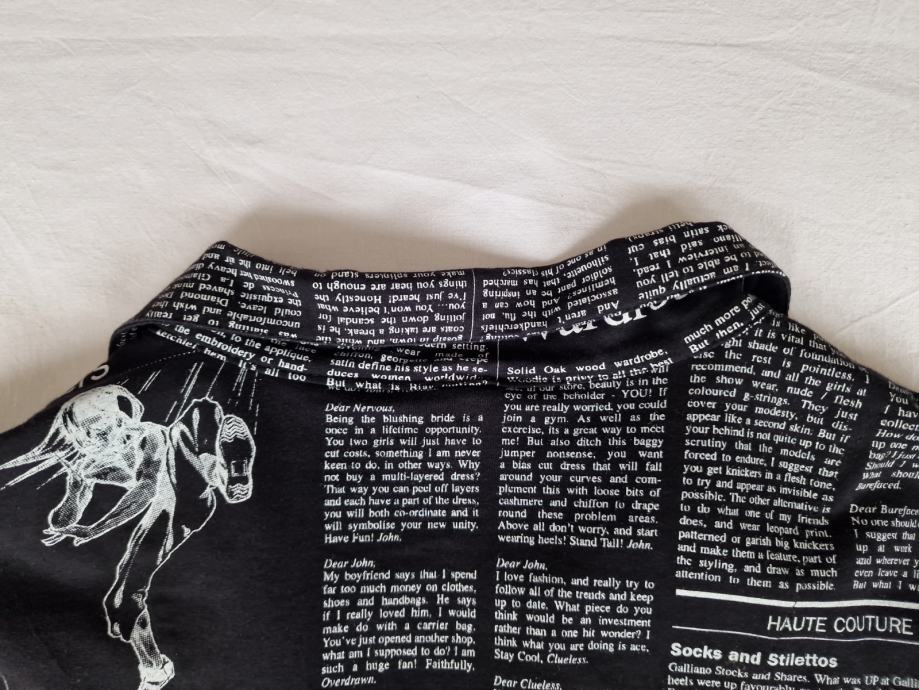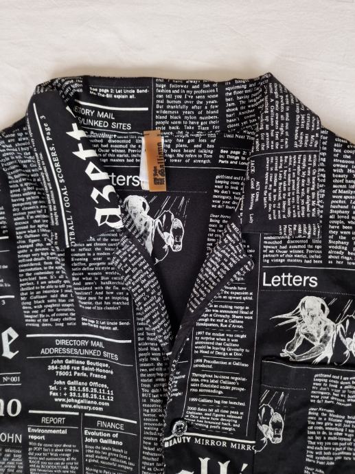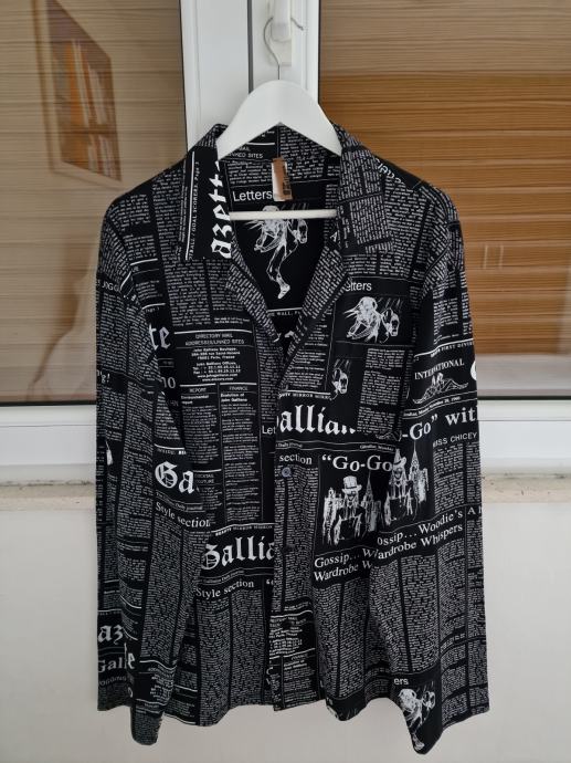 Prodajem John Galliano crnu print košulju dugi rukav. Original, odlično očuvana, veličina: L, prsa: 62 cm, ramena: 52cm, dužina: 78 cm i dužina rukava: 71 cm, odgovara za veličinu: XL. Šaljem poštom ili Tisak paketima poslije uplate.