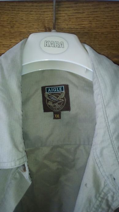 Prodajem rabljenu mušku košulju brenda AIGLE u zelenoj boji, veličine XXL. Izrađena je od kvalitetnog pamučnog materijala koji je ugodan za nošenje. Košulja je u dobrom stanju i idealna za svakodnevne prilike.