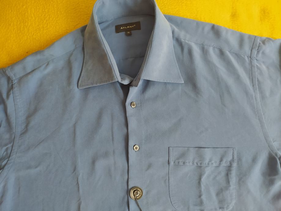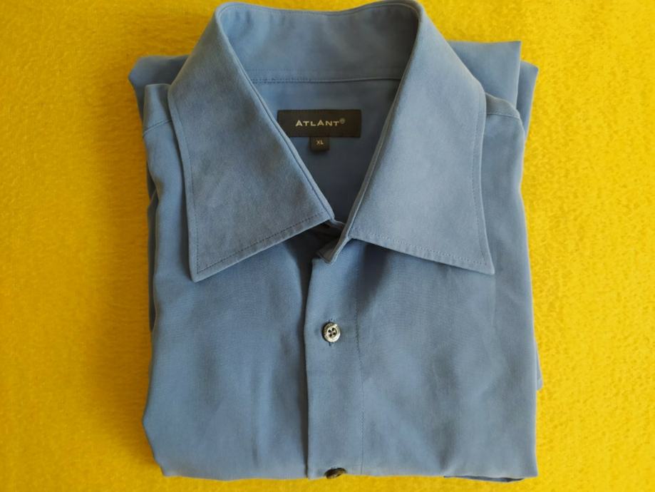 Košulja "Atlant" vel XL. Košulja dugih rukava kraljevstvo plava boja decentan uzorak s crnim gumbima. Made in Italy. Materijal je 80%poysonic,20% poliester. Svaki dan za kombinirati, kao casual, za posao.. Za svečane prilike. Dužina 80.5cm, širina 62cm, ramena 52cm, rukav 64cm. Nova odlična.
