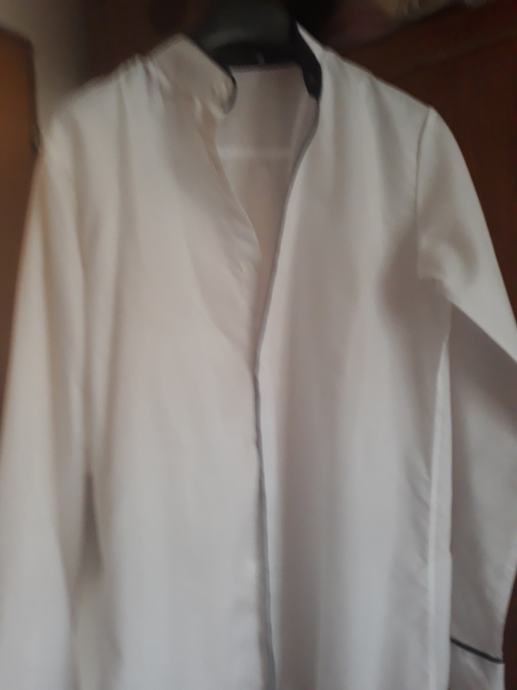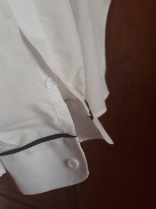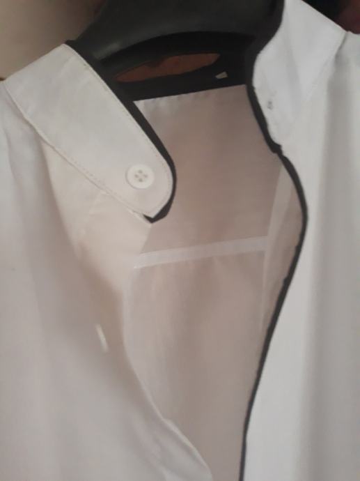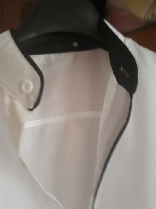 Muška elegantna košulja, dugi rukavi, besprijekorno glačanje. Bijele boje sa crnim paspulom (vidljivo na slici) i crnim unutarnjim ovratnikom.