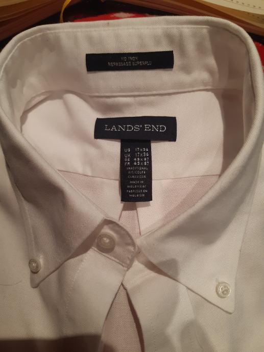 LANDS AND potpuno nova pamucna bijela kosulja, vel. L/XL. Sirina prsa, samo prednja strana: 65 cm, duzina: 80 cm, dužina rukava: 64 cm.