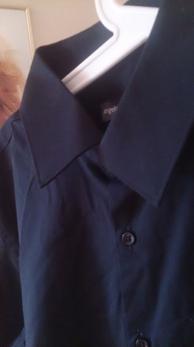 Odlična crna blago strukirana košulja, dugi rukavi, na manžetama dva gumba, malo elastična, donji rub lagano zaobljen