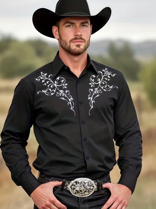Muška kaubojska košulja u western stilu - ležerna dugih rukava s botaničkim printom