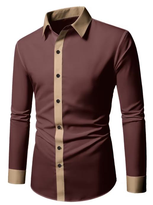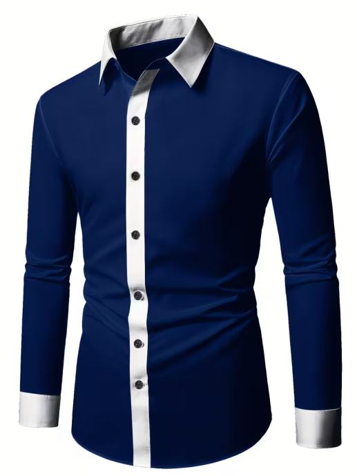 Muška košulja dugih rukava, odijelo i poslovna odjeća, patchwork dizajn, dvije jednobojne boje, nošenje za sva godišnja doba, košulja dugih rukava na kopčanje