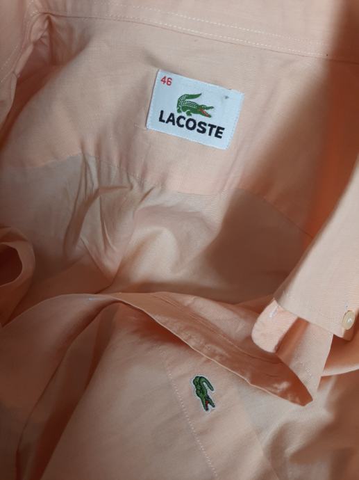 Muška košulja dugih rukava Lacoste. Nošena svega par puta, bez oštećenja. Vel. 46. Dužina od vrha ramena do dolje 77cm, širina od pazuha do pazuha 67cm, dužina rukava od pazuha do dolje 55cm