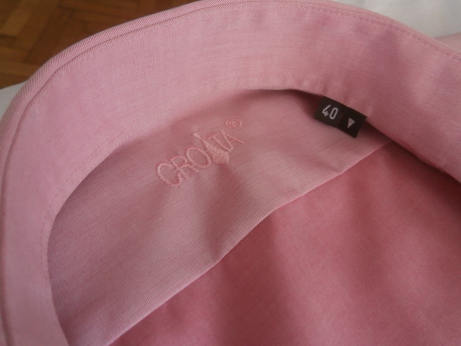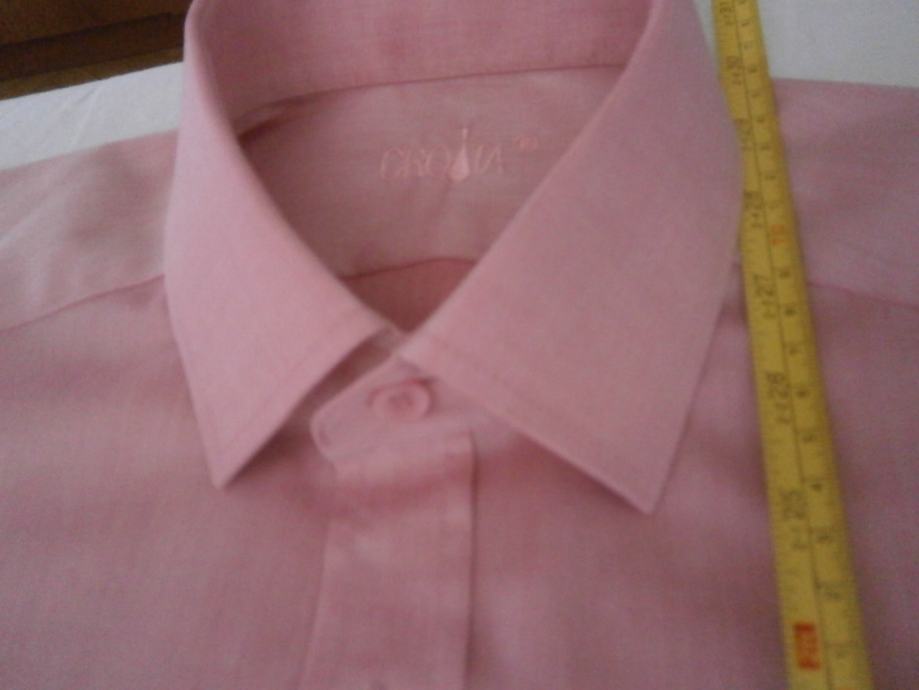 Prodajem mušku košulju CROATA kratkih rukava broj 40. Očuvana, nošena samo jednom za svečanu priliku. Nova je u trgovini 72 eura. Dimenzije: visina 76 cm, širina (struk) 52 cm, ramena 47 cm. Prodajem i jednu tirkiznu - obje za 18 eura. Dostava nije u cijeni.