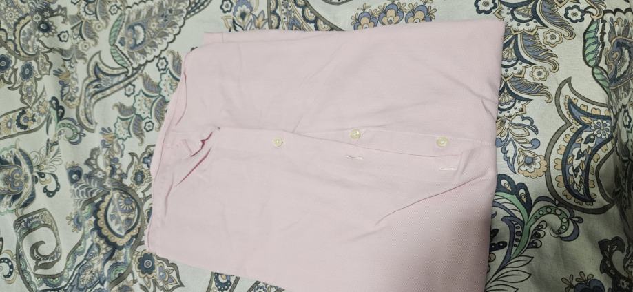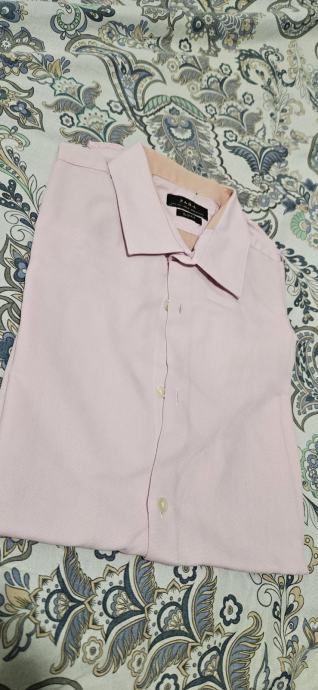 Zanimljiva roza muška košulja dugih rukava i teksturastog materijala. Nema oštećenja, rijetko nošena.