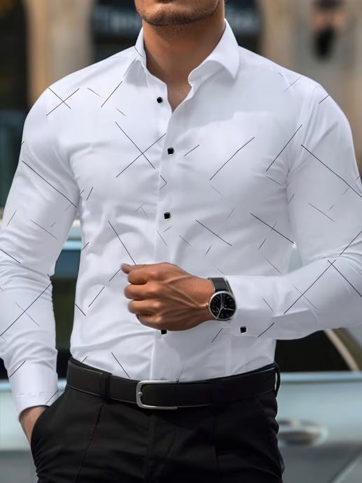 Jednobojna košulja uključuje moderne linijske elemente, dodajući svježinu klasičnom stilu. S izvrsnim gumbima i krojem po mjeri, ističe elegantan štih. Dizajnirana da zadovolji potrebe odijevanja zapadnih muškaraca.