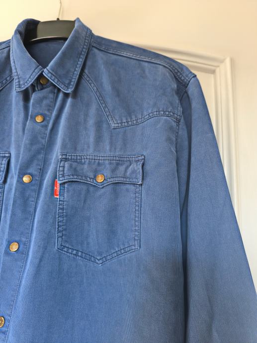 Košulja je očuvana, oprana i popeglana. Materijal je kao sitno rebrasti samt.