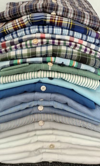 Muške košulje dugih i kratkih rukava, pamučne, većina ih je veličine L, jednobojne i karirane. Cijena po dogovoru