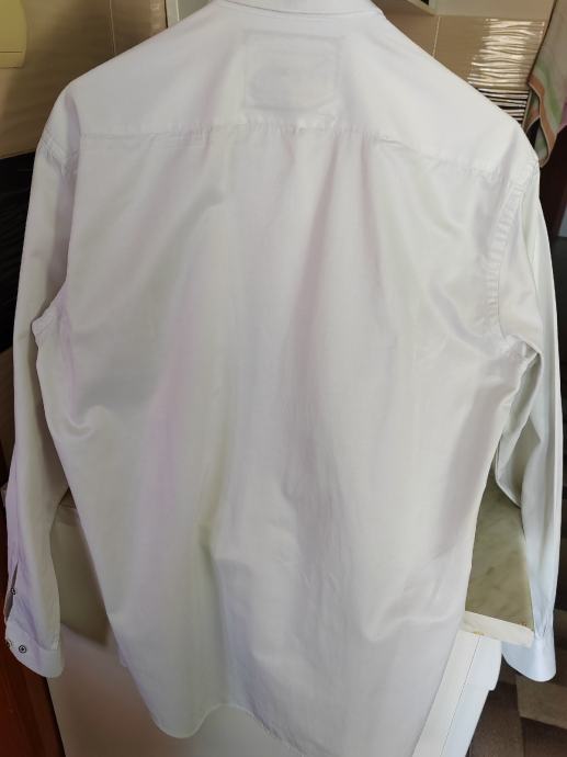 Prodaje se košulja bijela, jednom obučena. Ramena 47, rukavi 61, širina struka 52, ispod pazuha 54, dužina 70 cm, slim fit kroj. Čista, ispeglana.